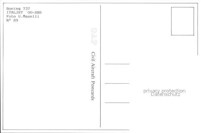 Flugzeuge Zivil Italjet Boeing 737 OO-SBS postalisch nicht gelaufen Erhaltung siehe scans