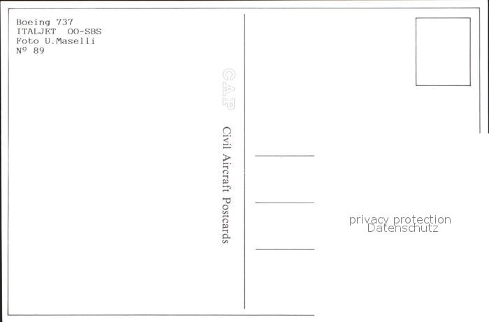 Flugzeuge Zivil Italjet Boeing 737 OO-SBS postalisch nicht gelaufen Erhaltung siehe scans