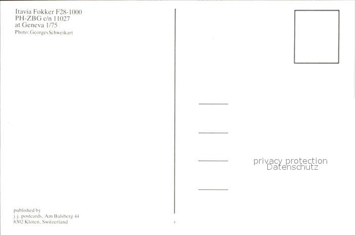 Flugzeuge Zivil Itavia Fokker F28-1000 PH-ZBG c/n 11027 postalisch nicht gelaufen Erhaltung siehe scans