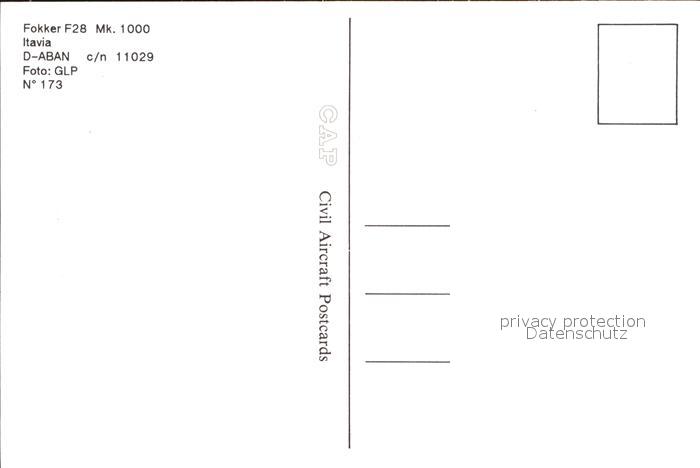 Flugzeuge Zivil Itavia Fokker F28 Mk.1000 D-ABAN c/n 11029 postalisch nicht gelaufen Erhaltung siehe scans