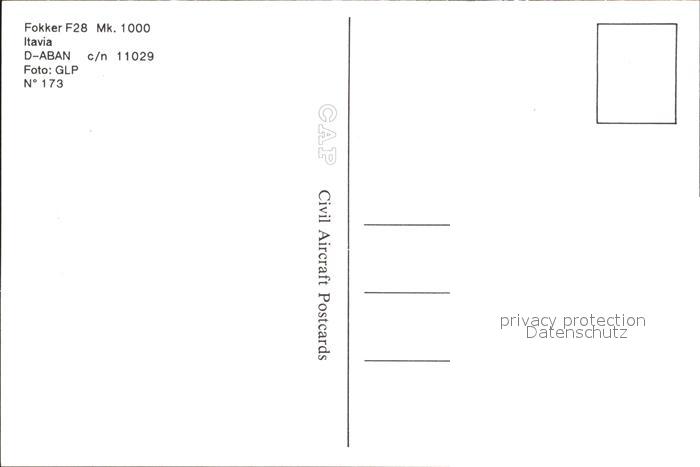 Flugzeuge Zivil Itavia Fokker F28 Mk.1000 D-ABAN c/n 11029 postalisch nicht gelaufen Erhaltung siehe scans