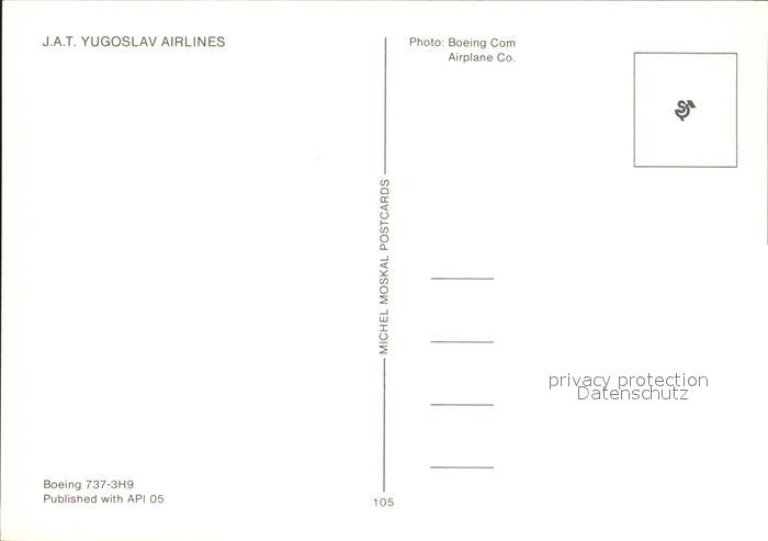 Flugzeuge Zivil J.A.T Yugoslav Airlines Boeing 737-3H9 TU-AND postalisch nicht gelaufen Erhaltung siehe scans
