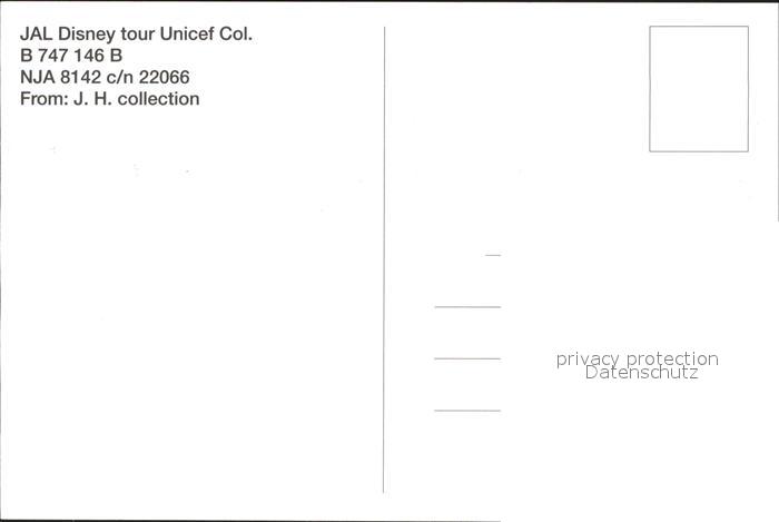 Flugzeuge Zivil JA Disney tour Unicef Col. B747 146 B NJA 8142 /n 22066 postalisch nicht gelaufen Erhaltung siehe scans