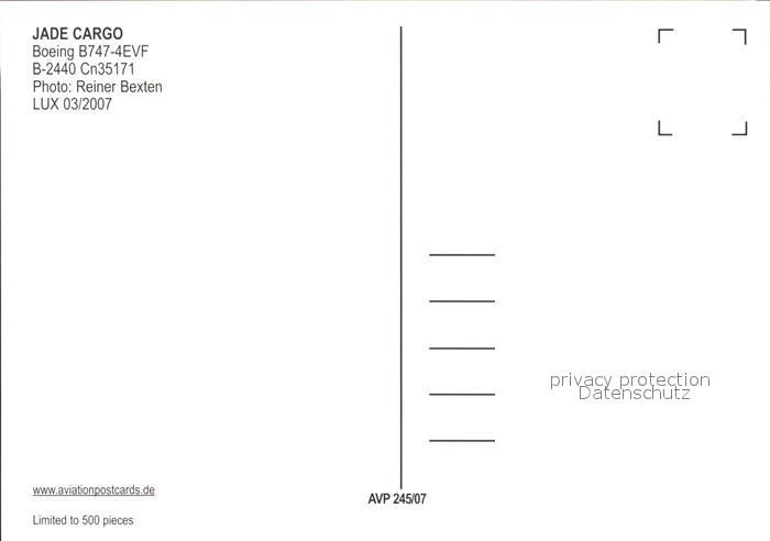 Flugzeuge Zivil Jade Cargo Boeing B747-4EVF B-2440 Cn35171 postalisch nicht gelaufen Erhaltung siehe scans