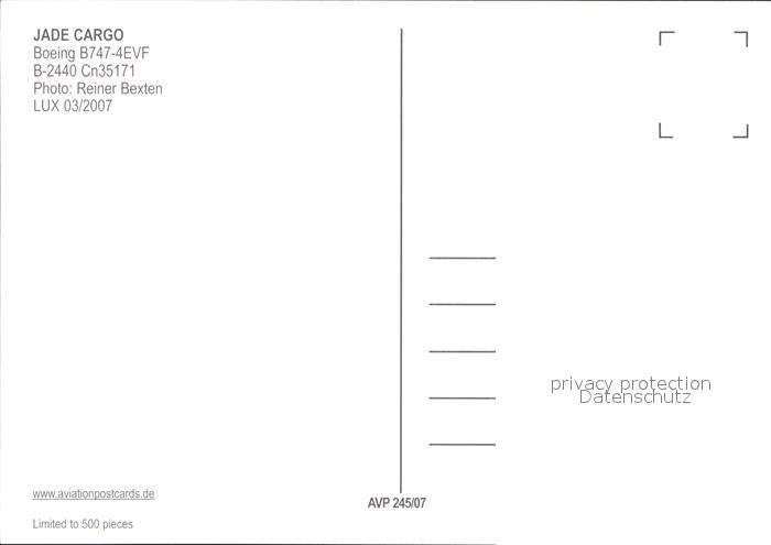 Flugzeuge Zivil JADE CARGO Boeing B747-4EVF LUXEMBOURG postalisch nicht gelaufen Erhaltung siehe scans