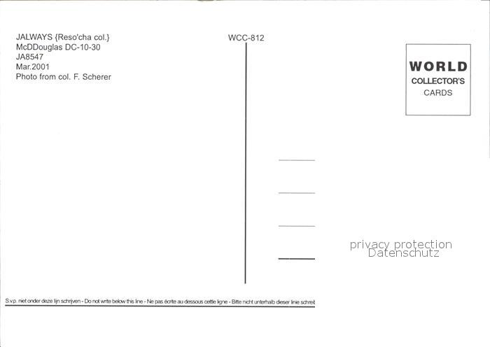 Flugzeuge Zivil Jalways McDDouglas DC-10-30 JA8547 postalisch nicht gelaufen Erhaltung siehe scans