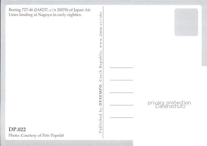 Flugzeuge Zivil Japan Air Lines Boeing 727-46 JA8237 c/n 20078 postalisch nicht gelaufen Erhaltung siehe scans