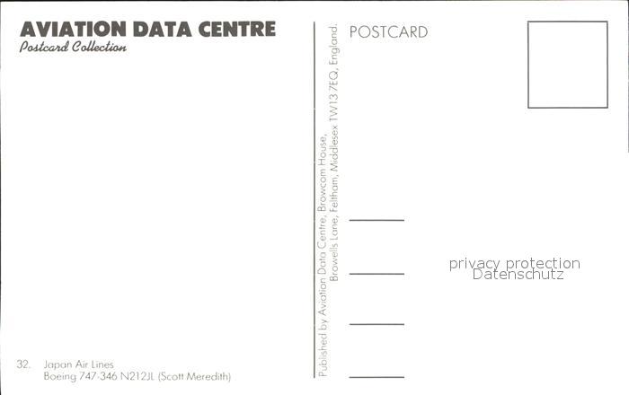 Flugzeuge Zivil Japan Air Lines Boeing 747-346 N212JL postalisch nicht gelaufen Erhaltung siehe scans