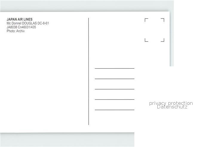 Flugzeuge Zivil Japan Air Lines Mc Donnell Douglas DC-8-61 JA8038 postalisch nicht gelaufen Erhaltung siehe scans