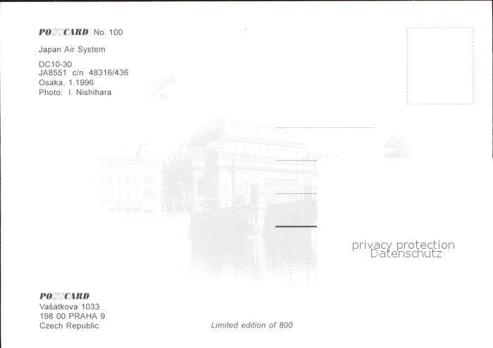 Flugzeuge Zivil Japan Air System DC10-30 JA8551 c/n 48316/436 postalisch nicht gelaufen Erhaltung siehe scans