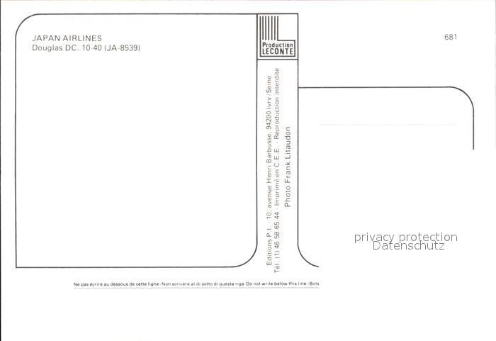 Flugzeuge Zivil Japan Airlines Douglas DC-10-40 JA-8539 postalisch nicht gelaufen Erhaltung siehe scans