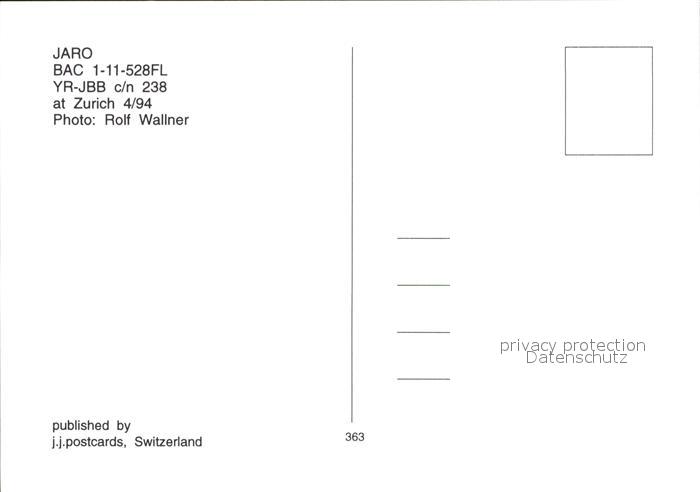 Flugzeuge Zivil Jaro BAC 1-11-528FL YR-JBB c/n 238 postalisch nicht gelaufen Erhaltung siehe scans