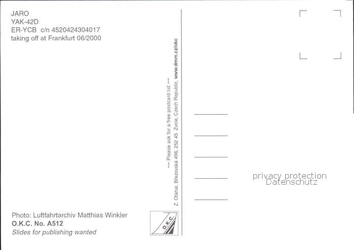 Flugzeuge Zivil JARO YAK-42D ER-YCB c/n 45520424304017 postalisch nicht gelaufen Erhaltung siehe scans