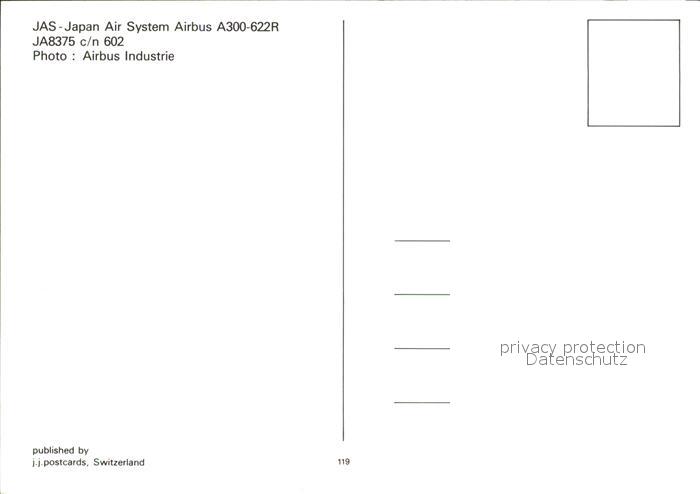 Flugzeuge Zivil JAS Japan Air System Airbus A300-622R JA8375 c/n 602 postalisch nicht gelaufen Erhaltung siehe scans