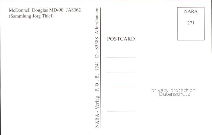 Flugzeuge Zivil JAS McDonnell Douglas MD-90 JA8062 postalisch nicht gelaufen Erhaltung siehe scans