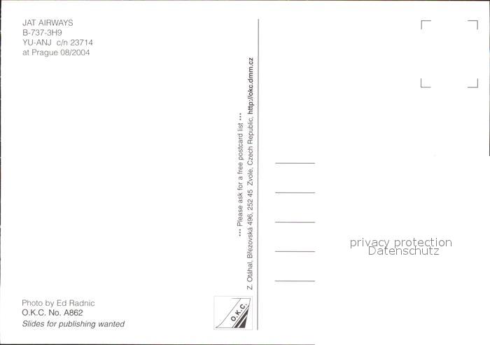 Flugzeuge Zivil JAT Airways B-737-3H9 YU-ANJ c/n 23714 postalisch nicht gelaufen Erhaltung siehe scans