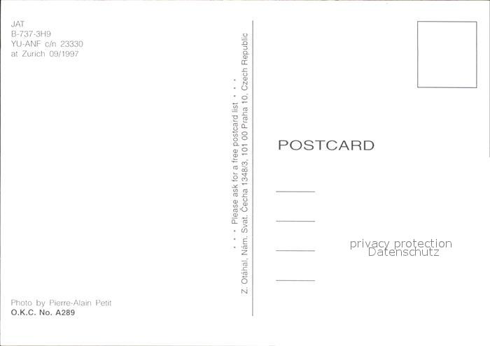 Flugzeuge Zivil JAT B-737-3H9 YU-ANF c/n 23330 postalisch nicht gelaufen Erhaltung siehe scans
