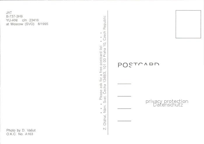 Flugzeuge Zivil JAT B-737-3H9 YU-ANI /n 23416 postalisch nicht gelaufen Erhaltung siehe scans