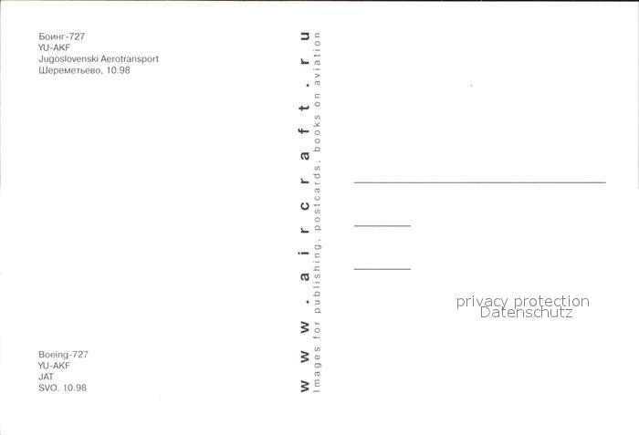 Flugzeuge Zivil JAT Boeing 727 YU-AKF postalisch nicht gelaufen Erhaltung siehe scans