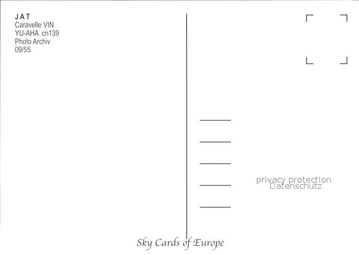 Flugzeuge Zivil JAT Caravelle VIN YU-AHA cn139 postalisch nicht gelaufen Erhaltung siehe scans