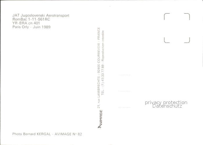 Flugzeuge Zivil JAT Jugoslovenski Aerotransport RomBac 1-11-561RC YR-BRA cn 401 postalisch nicht gelaufen Erhaltung siehe scans
