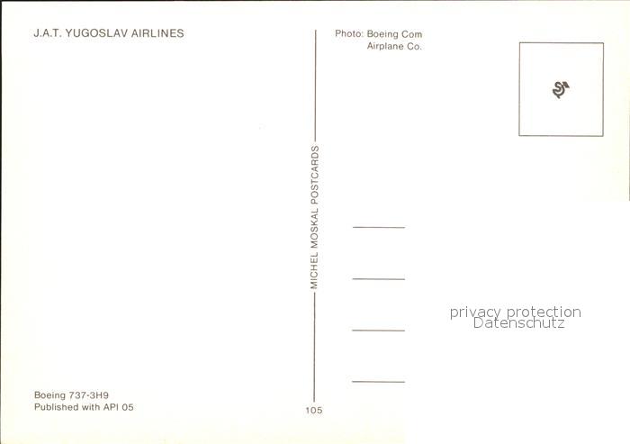 Flugzeuge Zivil JAT Yugoslav Airlines Boeing 737-3H9 postalisch nicht gelaufen Erhaltung siehe scans