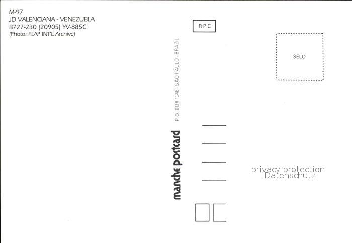 Flugzeuge zivil JD Valenciana Venezuela B727-230 postalisch nicht gelaufen Erhaltung siehe scans