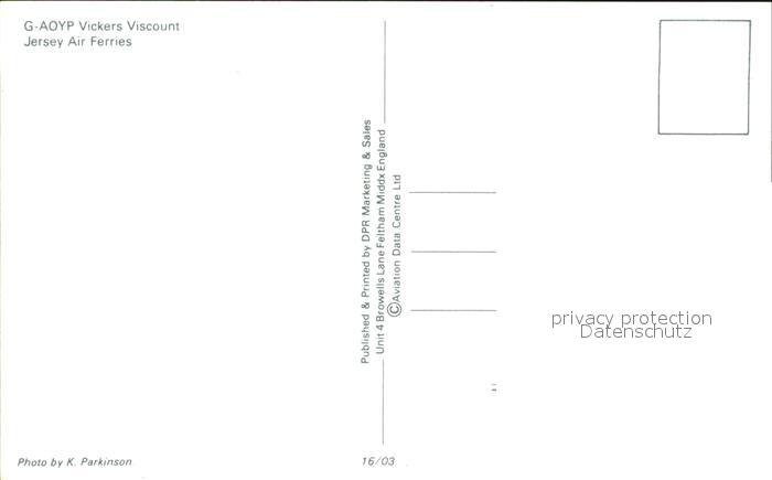 Flugzeuge Zivil Jersey Air Ferries Vickers Viscount G-AOYP postalisch nicht gelaufen Erhaltung siehe scans
