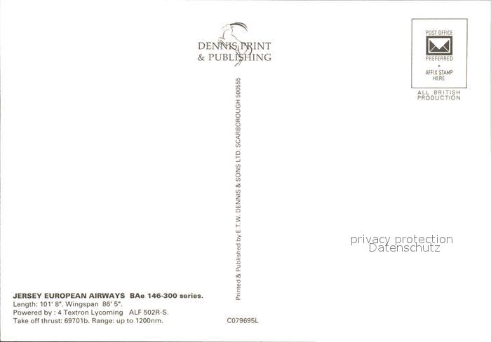 Flugzeuge Zivil Jersey European Airways BAe 146-300 postalisch nicht gelaufen Erhaltung siehe scans