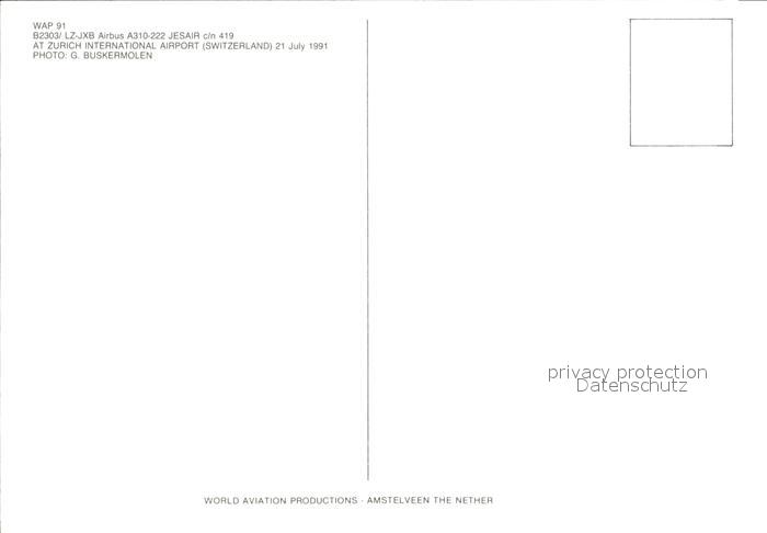Flugzeuge Zivil Jesair Airbus A310-222 LZ-JXB postalisch nicht gelaufen Erhaltung siehe scans
