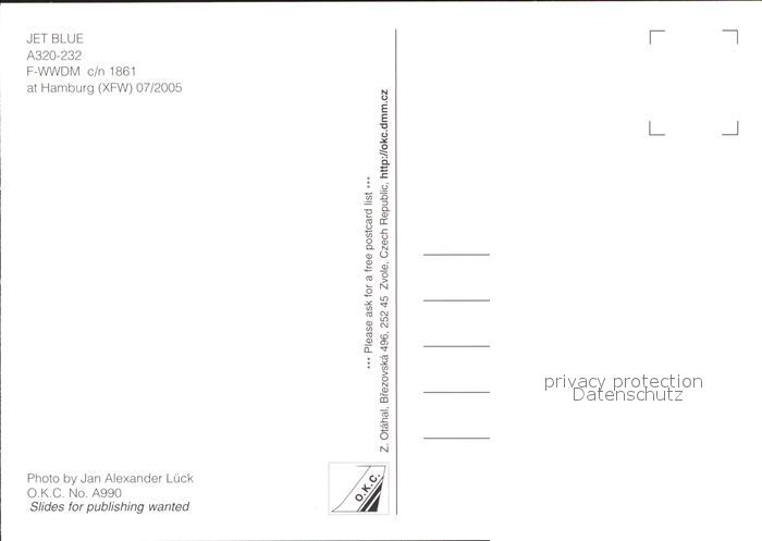 Flugzeuge Zivil Jet Blue A320-232 F-WWD c/n 1861 postalisch nicht gelaufen