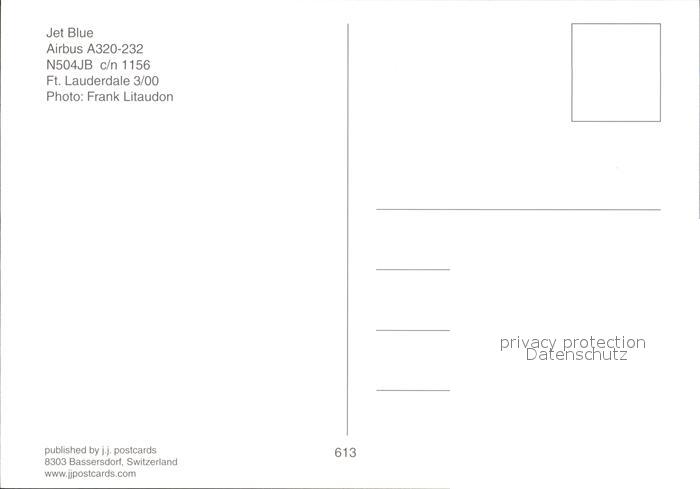 Flugzeuge Zivil Jet Blue Airbus A320-232 N504JB c/n 1156 postalisch nicht gelaufen Erhaltung siehe scans
