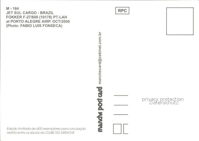 Flugzeuge Zivil Jet Sul Cargo Fokker F-27/600 10178 PT-LAH postalisch nicht gelaufen Erhaltung siehe scans