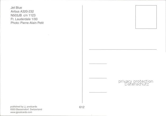 Flugzeuge Zivil JetBlue Airbus A320-232 N503JB c/n 1123 postalisch nicht gelaufen Erhaltung siehe scans