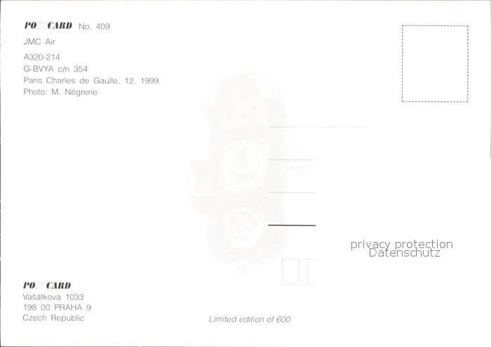 Flugzeuge Zivil JMC Air A320-214 G-BVYA c/n 354 postalisch nicht gelaufen Erhaltung siehe scans