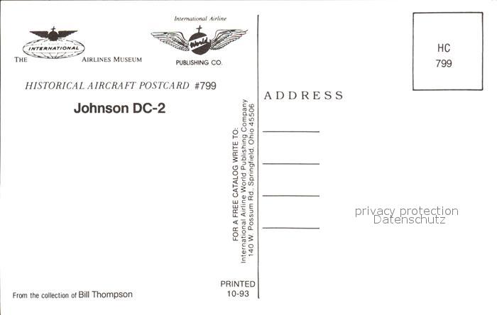 Flugzeuge Zivil Johnson DC-2 postalisch nicht gelaufen Erhaltung siehe scans