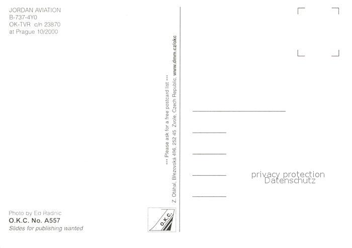 73225998 Flugzeuge Zivil Jordan Aviation B-737-4Y0 OK-TVR c/n 23870 KatCode 22120000001300