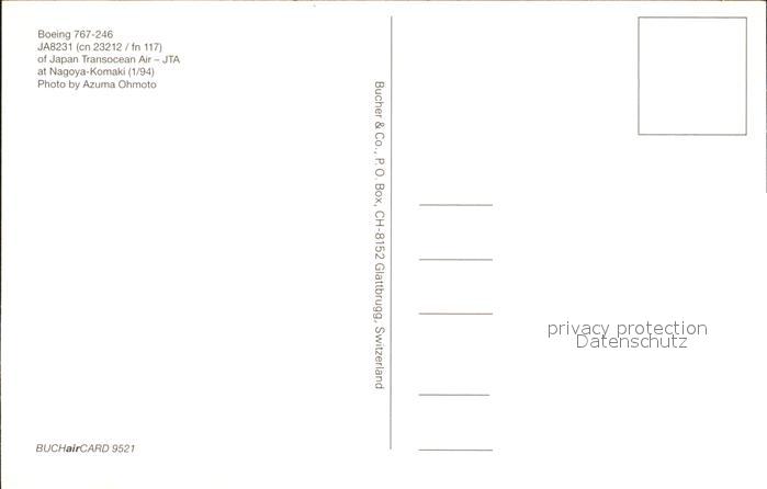 Flugzeuge Zivil JTA Boeing 767-246 JA8231 cn 23212 postalisch nicht gelaufen Erhaltung siehe scans