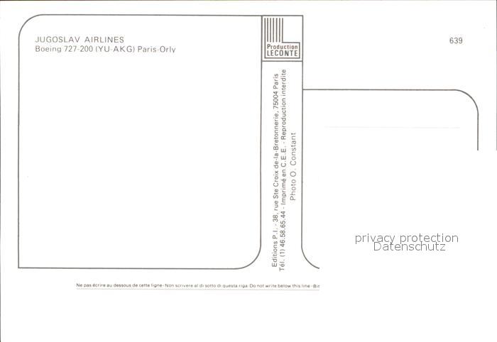 Flugzeuge Zivil Jugoslav Airlines Boeing 727-200 YU-AKG postalisch nicht gelaufen