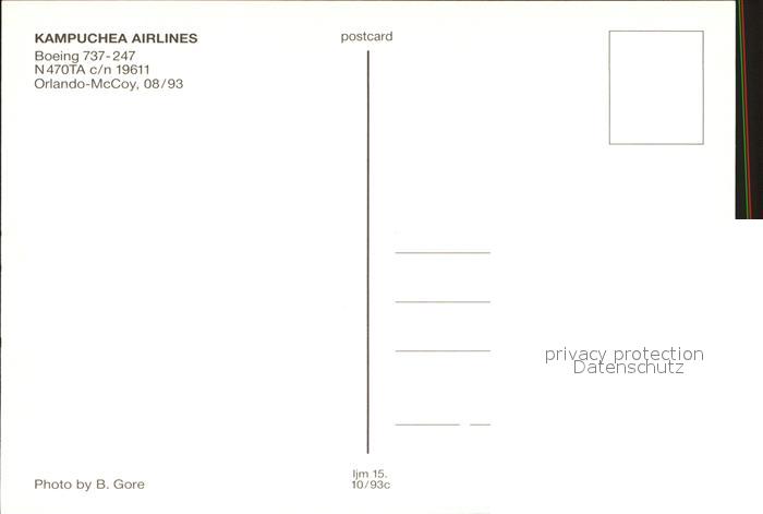 Flugzeuge Zivil Kampuchea Airlines Boeing 737-247 N470TA c/n 19611 postalisch nicht gelaufen Erhaltung siehe scans