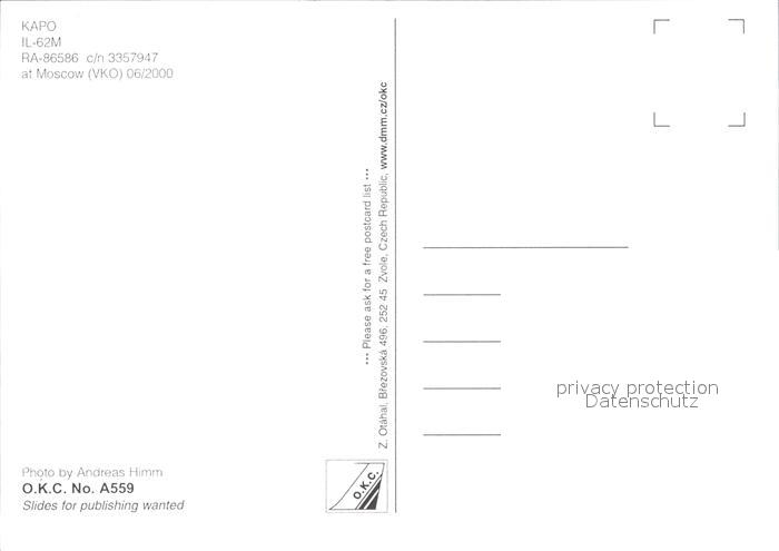 Flugzeuge Zivil KAPO IL-62M RA-85586 c/n 3357947 postalisch nicht gelaufen Erhaltung siehe scans