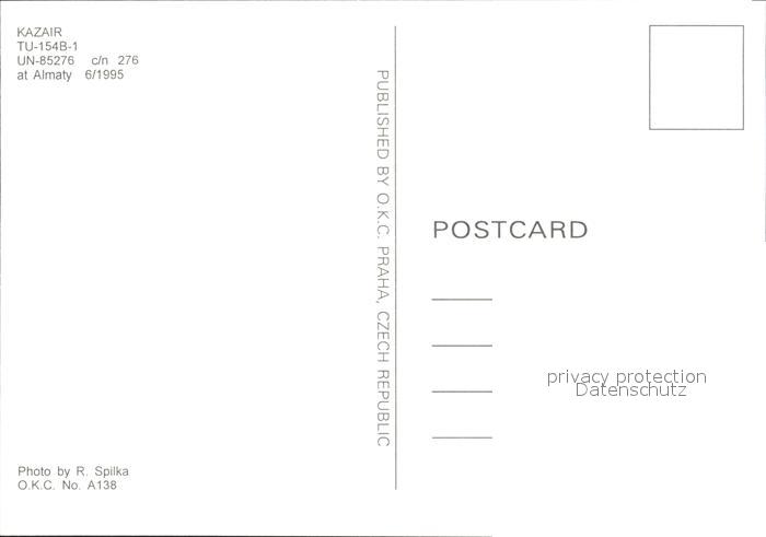 Flugzeuge Zivil Kazair TU154B-1 UN-85276 c/n 276 postalisch nicht gelaufen Erhaltung siehe scans