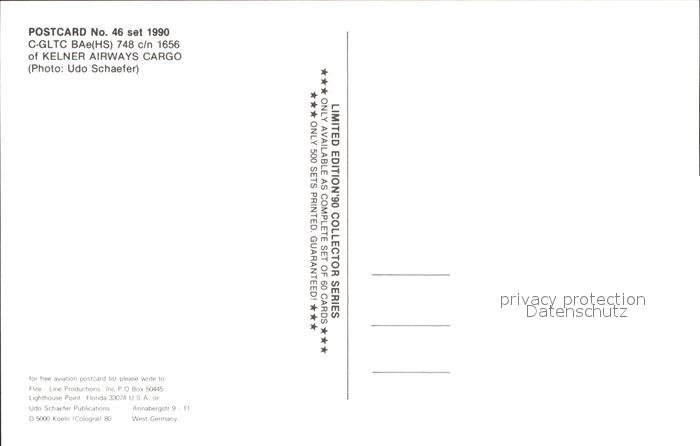 Flugzeuge Zivil Kelner Airways Cargo BAe (HS) 748 C-GLTC c/n 1656 postalisch nicht gelaufen Erhaltung siehe scans