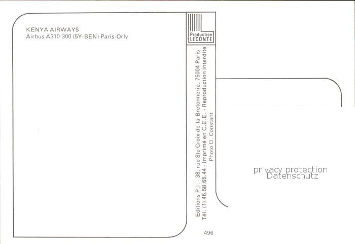 Flugzeuge Zivil Kenya Airways A310-300 5Y-BEN postalisch nicht gelaufen Erhaltung siehe scans