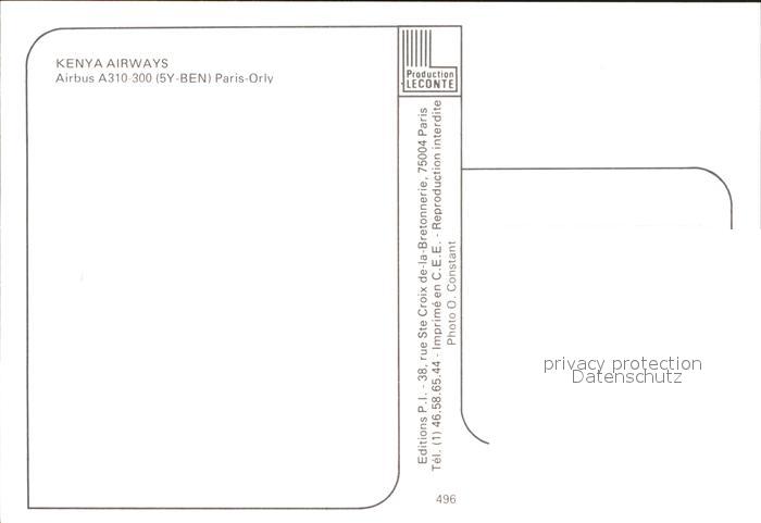 Flugzeuge Zivil Kenya Airways Airbus A310-300 5Y-BEN postalisch nicht gelaufen Erhaltung siehe scans