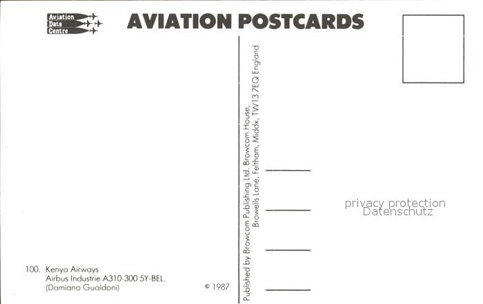 Flugzeuge Zivil Kenya Airways Airbus Industrie A310-300 5Y-BEL postalisch nicht gelaufen Erhaltung siehe scans