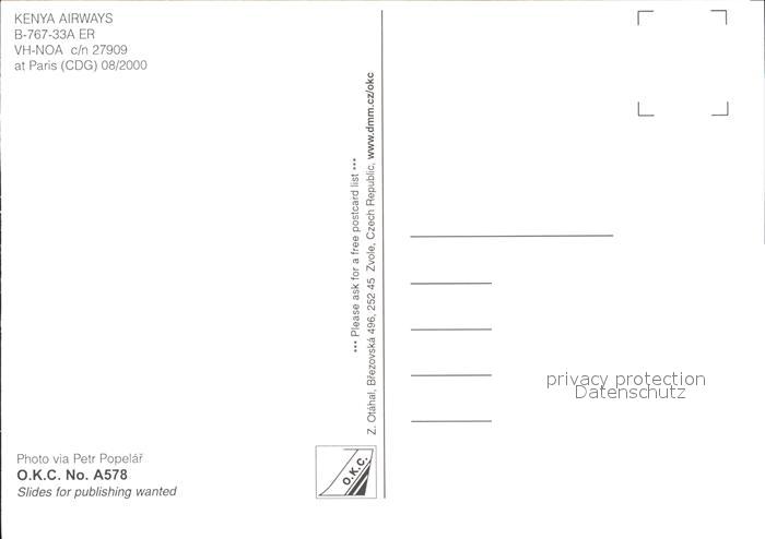 Flugzeuge Zivil Kenya Airways B-767-33A ER VH-NOA c/n 27909 postalisch nicht gelaufen Erhaltung siehe scans