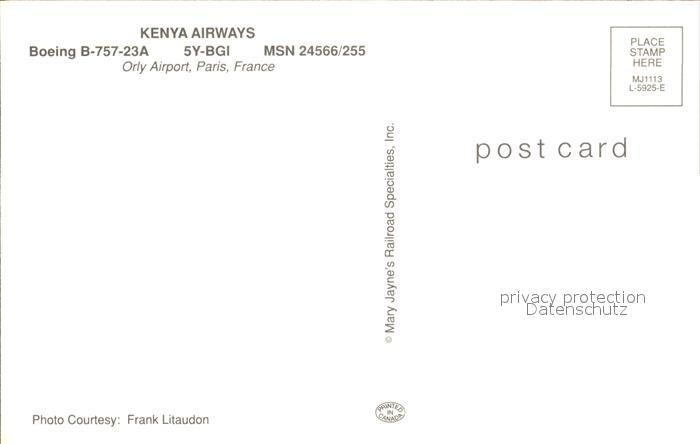 Flugzeuge Zivil Kenya Airways Boeing 757-23A 5Y-BGI MSN 24566/255 postalisch nicht gelaufen Erhaltung siehe scans
