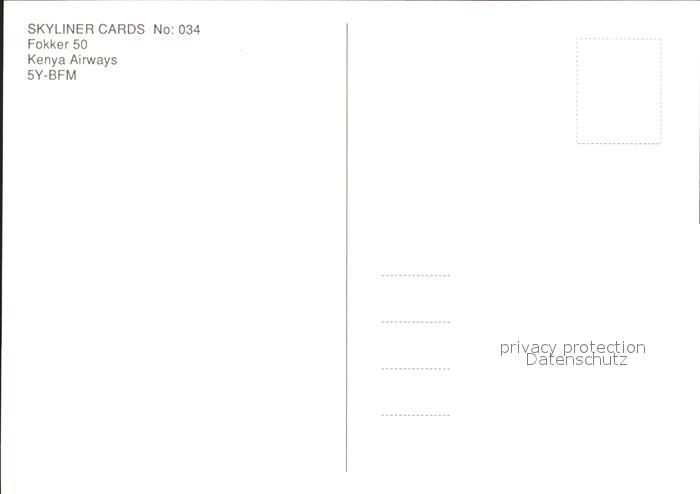 Flugzeuge Zivil Kenya Airways Fokker 50 5Y-BFM postalisch nicht gelaufen Erhaltung siehe scans