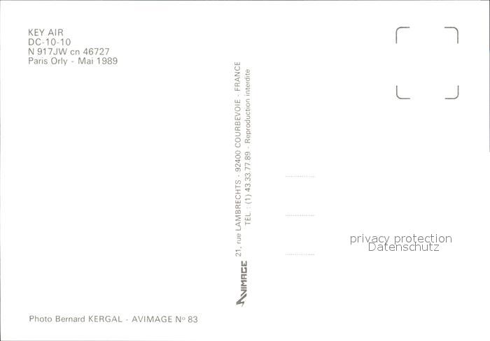 Flugzeuge Zivil Key Air DC-10-10 N917JW cn 46727 postalisch nicht gelaufen Erhaltung siehe scans